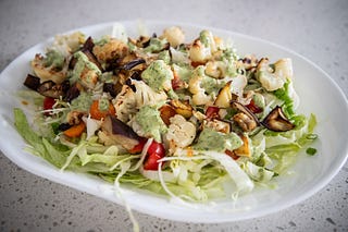 Roasted cauliflower & eggplant salad with cilantro-yogurt sauce