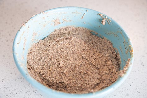 Use food processor to grind the oats, chia and flax seeds until they become a powdery texture, like flour.