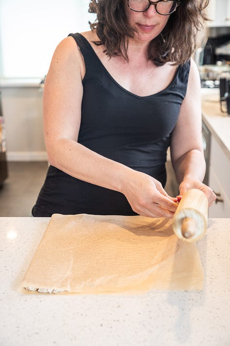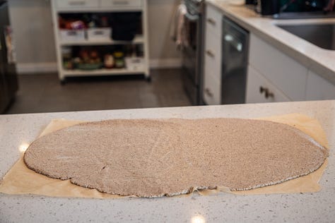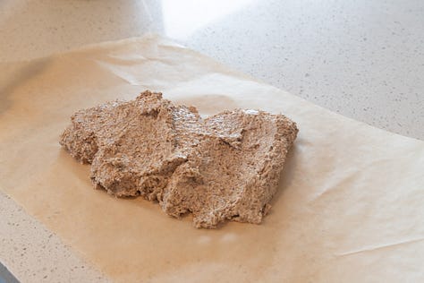 Spread between two baking papers, roll into a thin layer, the thinner it is, the crispier the cracker.