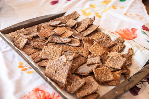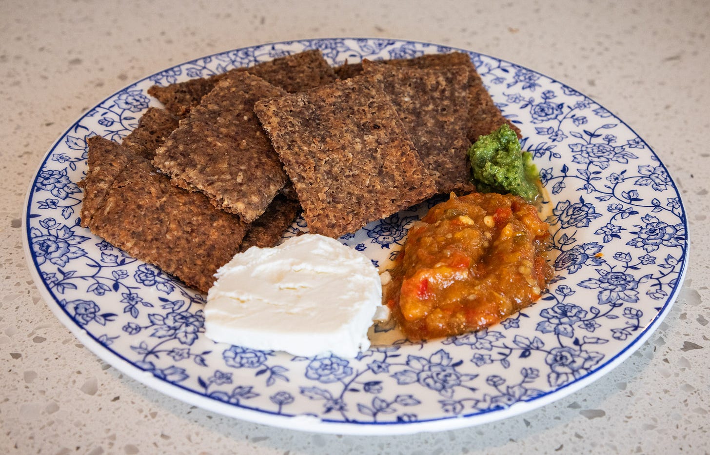 These crackers, crafted primarily from oats and nuts, elevate any spread plate into a delightful treat. Packed with nuts, they offer a satisfying crunch, making even a small spread plate with a few crackers a perfect choice for a light breakfast or dinner."