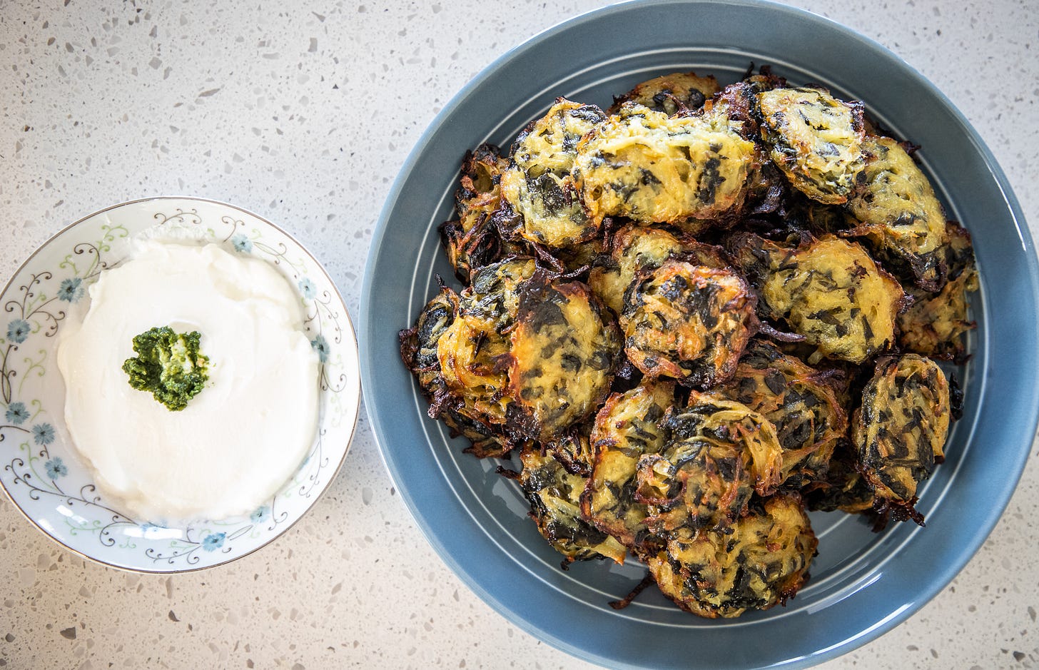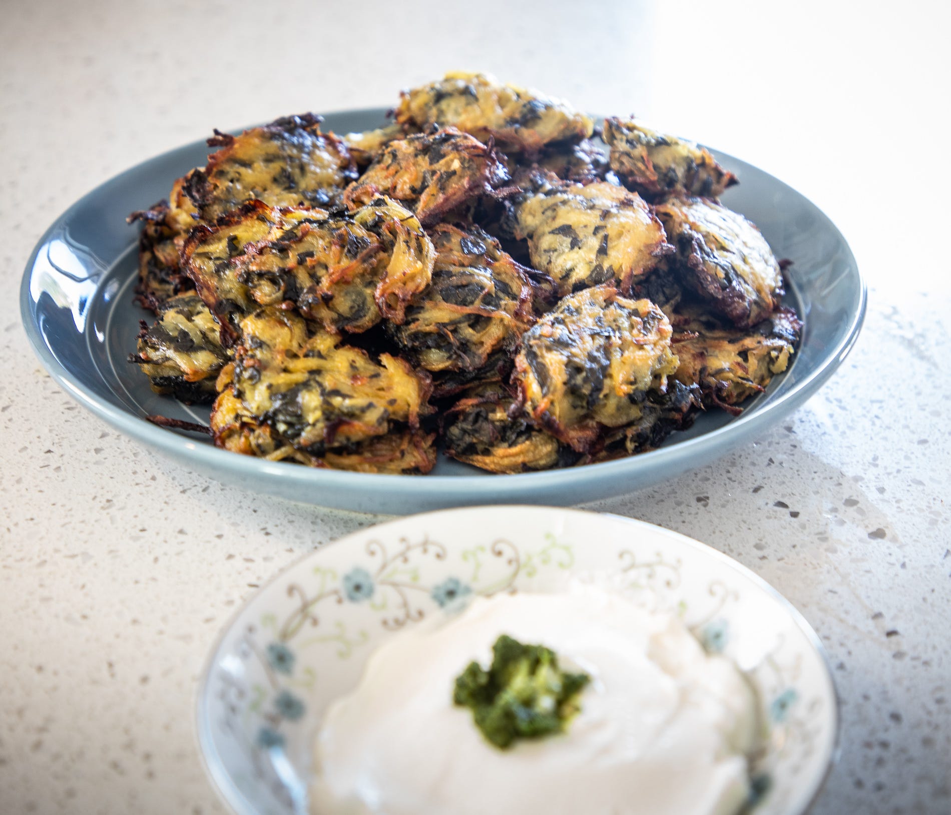 No-Fry Potato and Spinach Latkes, save us a lot of time and extra oil with a great texture and flavors.